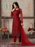 A Line Style Maroon Colour Net,Shantoon Fabric Pretty Unstitched Salwar Kameez The lovely Embroidery work a substantial attribute of this attire.