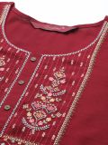 Walk with style adorning this maroon color kurta made in rayon. Elevated with thread and sequins embroidery along the neckline crafted with 3/4th sleeves. Note: Some color variations may occur owing to photography causes. Up to 1 inch of measurement fluctuation is possible.