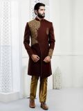 Maroon indowestern for men embellished with zari & thread work perfectly made to match with brides dress on wedding,sangeet or reception.Also perfect attire for groomsmen to flaunt there style on the special day.