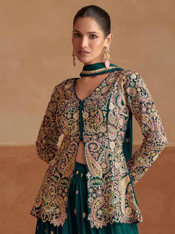 Green Indowestern Lehenga Set With Flare Style Kameez