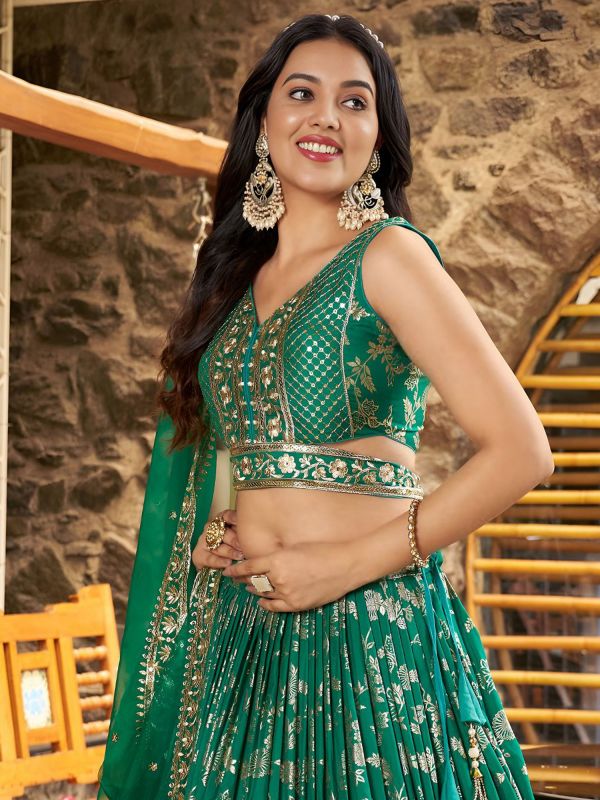 Green Wedding Lehenga Choli With Chiffon Dupatta