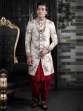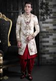 Get a classy ethnic look with this Cream Colour Silk Fabric Men's Indo Western With Thread,Zari,Zardozi Work.