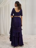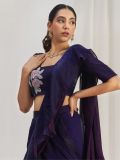 Slay with your classy taste as you wear this midnight purple color readymade saree crafted in organza. Augmented using sequins and hand work embroidery. Paired with a matching purple color embroidered blouse in organza. Note: The accessories featured are purely for fashion purposes. Due to photography reasons, some color variations may occur. The un-stitched blouse may be customized up to 42 inches.