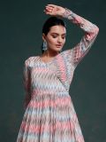 Here Elegance meets everlasting love with this multicolor full sleeved gown made in georgette. Augmented with digital print. The dress does not contain bottom. Note: Some color variations may occur owing to photography causes. Up to 1 inch of measurement fluctuation is possible.