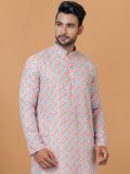 Grab all the fetsive vibes as you wear this multicolor kurta made in cotton. Enhanced with zig-zag printed digital patterns with fine embroideries. Available with a white color trousers in dupion silk. Note: Some color variations may occur owing to photography causes. Up to 1 inch of measurement fluctuation is possible.