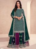 Overwhelm the audience as you wear this multicolor lehenga in chinon. Augmented with sequins and thread embroidered work. Paired with a matching castelon green color kurti style embroidered choli in chinon and green color dupatta, made in chinon. Note: The accessories featured are purely for fashion purposes. Due to photography reasons, some color variations may occur. The semi-stitched choli and lehenga waist may be customized up to 42 inches.