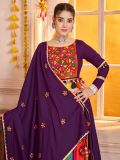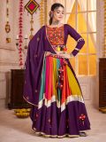 Step into the spotlight as you wear this multicolor designer lehenga made in viscose cotton. Designed with mirror work and floral thread embroidered work. Paired with a matching purple color full sleeved embroidered choli and a purple color dupatta, both made in viscose cotton. Note: The accessories featured are purely for fashion purposes. Due to photography reasons, some color variations may occur. The semi-stitched choli and lehenga waist may be customized up to 42 inches.