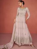 Be the cente of attraction as you wear this off-white color sharara suit in georgette. Furnished using sequins and thread embroidery all over. Paired with a matching georgette dupatta and a matching palazzo in georgette. Note: Accessories shown are for styling purpose only. Slight color variation may occur due to photographic reasons. The semi-stitched kameez can be customised upto 42 inches.