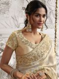 Wrap yourself in culture wearing this off white color saree crafted in silk. Designed using stone, sequin and zari with floral thread embroidered, showcasing distinstive borders and pallu. Comes with a matching cream color embroidered blouse in silk. Note: The accessories featured are purely for fashion purposes. Due to photography reasons, some color variations may occur. The un-stitched embroidered blouse may be customized up to 42 inches.