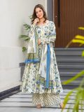 Be the epitome of grace wearing this off white color readymade anarkali style kameez in muslin. Designed using digital printed all over. Comes with a muslin dupatta in print and a palazzo style bottom, both made in off white color. Note: Accessories shown are for styling purpose only. Slight color variation may occur due to photographic reasons.