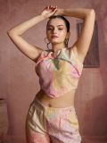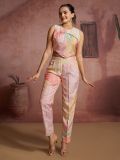 Effortlessly slay the day as you wear this off white color half sleeved stylish top made in pure muslin silk. Decorated with printed pattern all over. Paired with matching off white color pant made in muslin silk. Note: Some color variations may occur owing to photography causes. Up to 1 inch of measurement fluctuation is possible.