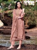 Walk with style adorning this peach color staright cut kameez in chanderi. Furnished using stone work and thread embroidery. Available with a matching dupatta and bottom made in chanderi. Note: Accessories shown are for styling purpose only. Slight color variation may occur due to photographic reasons. The semi-stitched kameez can be customised upto 42 inches.