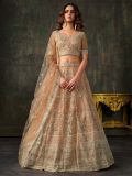 Adorning yourself in the poetry wearing this peach color bridesmaid lehenga designed in heavy net. Enhanced with sequins, stone work enhanced and zari embellishment with heavy floral thread work embroidery all over. Available with a matching peach color embroidered choli and a peach color dupatta, both made in net. Note: The accessories featured are purely for fashion purposes. Due to photography reasons, some color variations may occur. The semi-stitched choli and lehenga waist may be customized up to 42 inches.