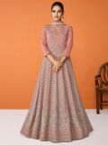 Spread the dazzling sparkles with this peach color anarkali kameez in georgette. Enhanced using sequins and thread work embroidery all over. Teamed with a matching georgette dupatta and a matching bottom in shantoon. Note: Accessories shown are for styling purpose only. Slight color variation may occur due to photographic reasons. The semi-stitched kameez can be customised upto 42 inches.