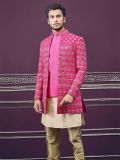 Pink Colour Silk Fabric Men's Indowestern With Matching Pajama and Thread,Zari Work