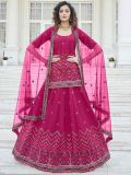 Upgrade your festive style wearing this deep pink hued festive lehenga in chiffon. Augmented with sparkly sequins and thread embroidery, creating a dramatic hemline. Comes along with a matching pink color kurti style choli in chiffon and a pink colored net dupatta, both embroidered with similar work. Please keep in mind that the accessories featured are purely for fashion purposes. Due to photography reasons, some color variations may occur. The semi-stitched choli and lehenga waist may be customized up to 42 inches.