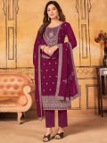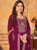 Grab all the attention with this deep pink color straight cut kameez in georgette. Crafted using sequins and dori embroidery all over. Available with an embroidered georgette dupatta and a matching bottom in shantoon. Note: Accessories shown are for styling purpose only. Slight color variation may occur due to photographic reasons. The semi-stitched kameez can be customised upto 42 inches.