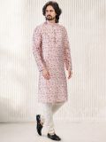 Steal the thunder adorning this soft pink color kurta made in banarasi silk. Augmented with a printed details all over, with potli buttons along the placket. Available with a white color churidar pants in art silk. Note: Some color variations may occur owing to photography causes. Up to 1 inch of measurement fluctuation is possible.