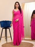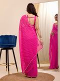 Stay cool and stylish in a breathable summer vibes adorning this pink color readymade saree crafted in georgette. Designed using digital printed in lehariya pattern. Comes with a matching pink color blouse in georgette. Note: The accessories featured are purely for fashion purposes. Due to photography reasons, some color variations may occur. The un-stitched blouse may be customized up to 42 inches.