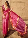Steal the limelight adorning this rani pink color saree in silk. Paired using bandhani with patola print enhanced by distinctive woven border and tasseled pallu. Paired with a matching pink color printed blouse in silk. Note: The accessories featured are purely for fashion purposes. Due to photography reasons, some color variations may occur. The un-stitched blouse may be customized up to 42 inches.