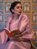 Look no less than a dream donning in this mauve pink color party wear saree made in handloom silk. Elevated using zari woven patterns all over and a pallu styled with thread tassels. Comes with a matching pink color blouse in silk. Please keep in mind that the accessories featured are purely for fashion purposes. Due to photography reasons, some color variations may occur. The un-stitched blouse may be customized up to 42 inches.