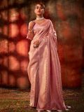Walk like a diva adorning this lush pink color saree crafted in art silk. Furnished using zari woven patterns all over with threaded tassels along the pallu. Comes with a matching pink color blouse in art silk. Note: The accessories featured are purely for fashion purposes. Due to photography reasons, some color variations may occur. The un-stitched blouse may be customized up to 42 inches.