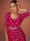 Overwhelm the audience adorning this hot pink color gathered kameez in georgette. Decorated using thread and mirror like embroidery all over. Available with a matching georgette dupatta and a matching palazzo in georgette. Note: Accessories shown are for styling purpose only. Slight color variation may occur due to photographic reasons. The semi-stitched kameez can be customised upto 42 inches.