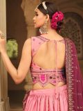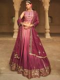 Mark a reveled glory wearing this pink and purple shaded designer lehenga in silk. Furnished with intricate sequins and thread embroidered work. Paired with a matching light pink color choli in silk and a pink bordered net dupatta, both embellished in similar work. Please keep in mind that the accessories featured are purely for fashion purposes. Due to photography reasons, some color variations may occur. The semi-stitched choli and lehenga waist may be customized up to 42 inches.