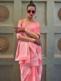 Slay with your classy taste as you wear this sweet pink color saree crafted in silk. Designed using chikankari patterns all over. Comes with a matching pink color blouse in silk. Note: The accessories featured are purely for fashion purposes. Due to photography reasons, some color variations may occur. The un-stitched blouse may be customized up to 42 inches.