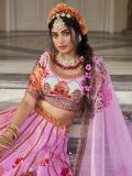 Show your feminine side to the world wearing this pink color designer lehenga in art silk. Decorated with sequins and hand work embroidery with traditional printed pattern all over. Paired with a matching pink color embroidered choli in art silk and a pink color dupatta, made in organza. Note: The accessories featured are purely for fashion purposes. Due to photography reasons, some color variations may occur. The semi-stitched choli and lehenga waist may be customized up to 42 inches.