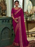 Allure the crowd wearing this dahlia pink color saree crafted in georgette. Furnished using thread embroidered work creating distinstive borders. Teamed with a matching pink color embroidered blouse in georgette. Note: The accessories featured are purely for fashion purposes. Due to photography reasons, some color variations may occur. The un-stitched blouse may be customized up to 42 inches.