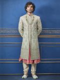Exclusive Pista Green Colour Silk Fabric Men's Designer Sherwani With Thread,Zari,Zardozi Work.