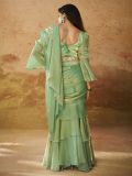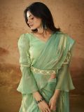 Design and pattern will be on the peak with this pista green color prestitched saree crafted in organza. Designed using pearl embellishments. Comes with a matching green color blouse in organza. Note: The accessories featured are purely for fashion purposes. Due to photography reasons, some color variations may occur. The un-stitched blouse may be customized up to 42 inches.