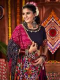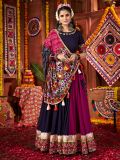 Addressing the Glamour while having this purple and magenta color designer lehenga in viscose cotton. Designed with mirror work embellishment and floral thread embroidered work. Available with a matching purple color choli and a multicolor bandhani printed dupatta, both made in viscose cotton. Note: The accessories featured are purely for fashion purposes. Due to photography reasons, some color variations may occur. The semi-stitched choli and lehenga waist may be customized up to 42 inches.