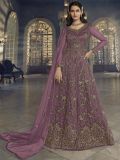 Be the life the party wearing this mauve purple color anarkali kameez in net. Decorated using zari embroidery all over and stone work. Paired with a matching net dupatta and a matching bottom. Note: Accessories shown are for styling purpose only. Slight color variation may occur due to photographic reasons. The semi-stitched kameez can be customised upto 42 inches.