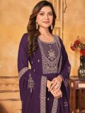 Presenting this heart purple color straight cut kameez in georgette. Augmented using sequins and dori embroidery all over. Available with an embroidered georgette dupatta and a matching bottom in shantoon. Note: Accessories shown are for styling purpose only. Slight color variation may occur due to photographic reasons. The semi-stitched kameez can be customised upto 42 inches.
