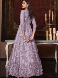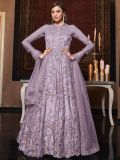Grace your surroundings wearing this lilac purple color anarkali suit in net. Furnished using zari, thread and sequins embroidery all over. Available with a matching net dupatta and a bottom in satin. Note: Accessories shown are for styling purpose only. Slight color variation may occur due to photographic reasons. The semi-stitched kameez can be customised upto 42 inches.