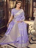 Turn your bling mode on as you wear this lavender purple color saree crafted in art silk. Enhanced using woven patterns all over, showcasing distinstive borders and pallu. Teamed with a matching purple color blouse in art silk. Note: The accessories featured are purely for fashion purposes. Due to photography reasons, some color variations may occur. The un-stitched blouse may be customized up to 42 inches.