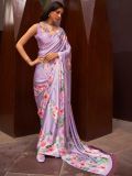 Charm all hearts adorning this soft purple color festive saree crafted in satin. Furnished using floral digital patterns, creating a subtle drama. Comes with a matching purple color blouse in satin. Please keep in mind that the accessories featured are purely for fashion purposes. Due to photography reasons, some color variations may occur. The un-stitched blouse may be customized up to 42 inches.