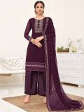Walk the glam sporting this purple straight cut kameez in georgette. Designed using sequins, dori and thread embroidery all over. Available with an embroidered georgette dupatta and a palazzo in shantoon. Note: Accessories shown are for styling purpose only. Slight color variation may occur due to photographic reasons. The semi-stitched kameez can be customised upto 42 inches.
