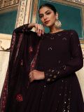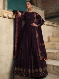 Get your hands on this dark purple color anarkali kameez in georgette. Elevated using sequins and thread work embroidery all over. Paired with a purple color embroidered dupatta in shimmer. Note: Accessories shown are for styling purpose only. Slight color variation may occur due to photographic reasons. The semi-stitched kameez can be customised upto 42 inches. The suit does not come with a bottom.