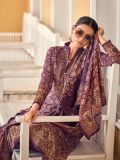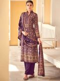 Evoke a classy diva in you adorning this purple color straight cut kameez in velvet. Crafted with floral digital prints all over and stones work. Paired with a matching printed pashmina dupatta and velvet pants. Note: Accessories shown are for styling purpose only. Slight color variation may occur due to photographic reasons. The semi-stitched kameez can be customised upto 42 inches.