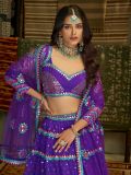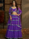 Mark the upcoming celebrations wearing this french violet hued designer lehenga in georgette. Furnished with sequins and thread, zari embroidered work. Available with a matching purple color embroidered choli in georgette and purple dupatta in net. Note: The accessories featured are purely for fashion purposes. Due to photography reasons, some color variations may occur. The semi-stitched choli and lehenga waist may be customized up to 42 inches.