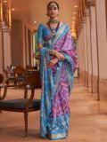 Shine brighter as you wear this purple color saree crafted in silk. Spruced up with dense patola print and showcasing woven distinctive borders. Comes with a matching blue printed blouse in silk. Note: The accessories featured are purely for fashion purposes. Due to photography reasons, some color variations may occur. The un-stitched blouse may be customized up to 42 inches.