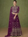 Draw all the attention adorning this heart purple color slitted anarkali kameez in georgette. Furnished using stones and thread embroidery all over. Available with a matching dupatta and bottom in georgette. Note: Accessories shown are for styling purpose only. Slight color variation may occur due to photographic reasons. The semi-stitched kameez can be customised upto 42 inches.
