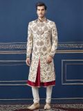 Fashion And Pattern Could Be At The Peak Of Your Magnificence Once You Dresses This Cream Colour Silk Fabric Designer Sherwani With Thread,Zari,Zardozi Work.