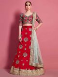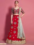 Appealing A Line Lehenga Choli in Red Colour Art Silk Fabric In Traditional Look This attire is nicely made with Embroidered work.