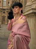 Dazzle the audience as you wearing this rose pink color saree crafted in silk. Enhanced using woven patterns, showcasing distinstive borders and pallu. Comes with a matching multicolor blouse in silk. Note: The accessories featured are purely for fashion purposes. Due to photography reasons, some color variations may occur. The un-stitched blouse may be customized up to 42 inches.