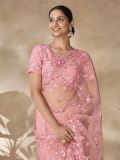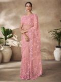 Magnificence after you dresses this rose pink color saree crafted in net. Enhanced using sequins and floral thread work embroidered patterns all over. Comes with a matching pink color blouse in net. Note: The accessories featured are purely for fashion purposes. Due to photography reasons, some color variations may occur. The un-stitched blouse may be customized up to 42 inches.