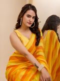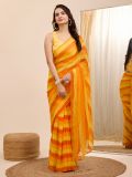 Feel the elegance in every fold of your summer saree in yellow and orange color readymade saree crafted in georgette. Designed using digital printed in linear pattern. Comes with a matching yellow color blouse in georgette. Note: The accessories featured are purely for fashion purposes. Due to photography reasons, some color variations may occur. The un-stitched blouse may be customized up to 42 inches.